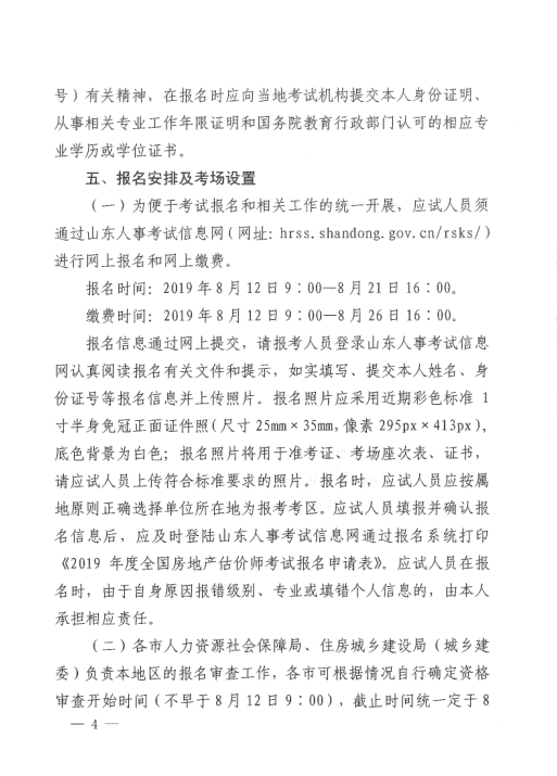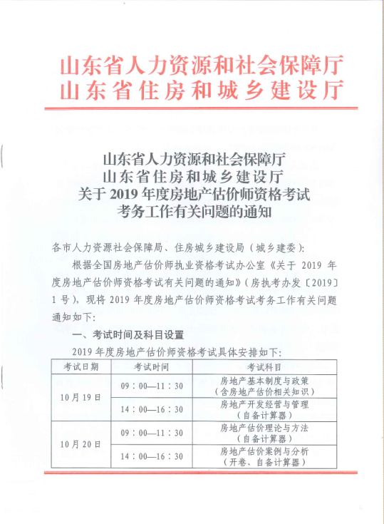 2019年度房地产估价师资格考试考务工作有关问题的通知