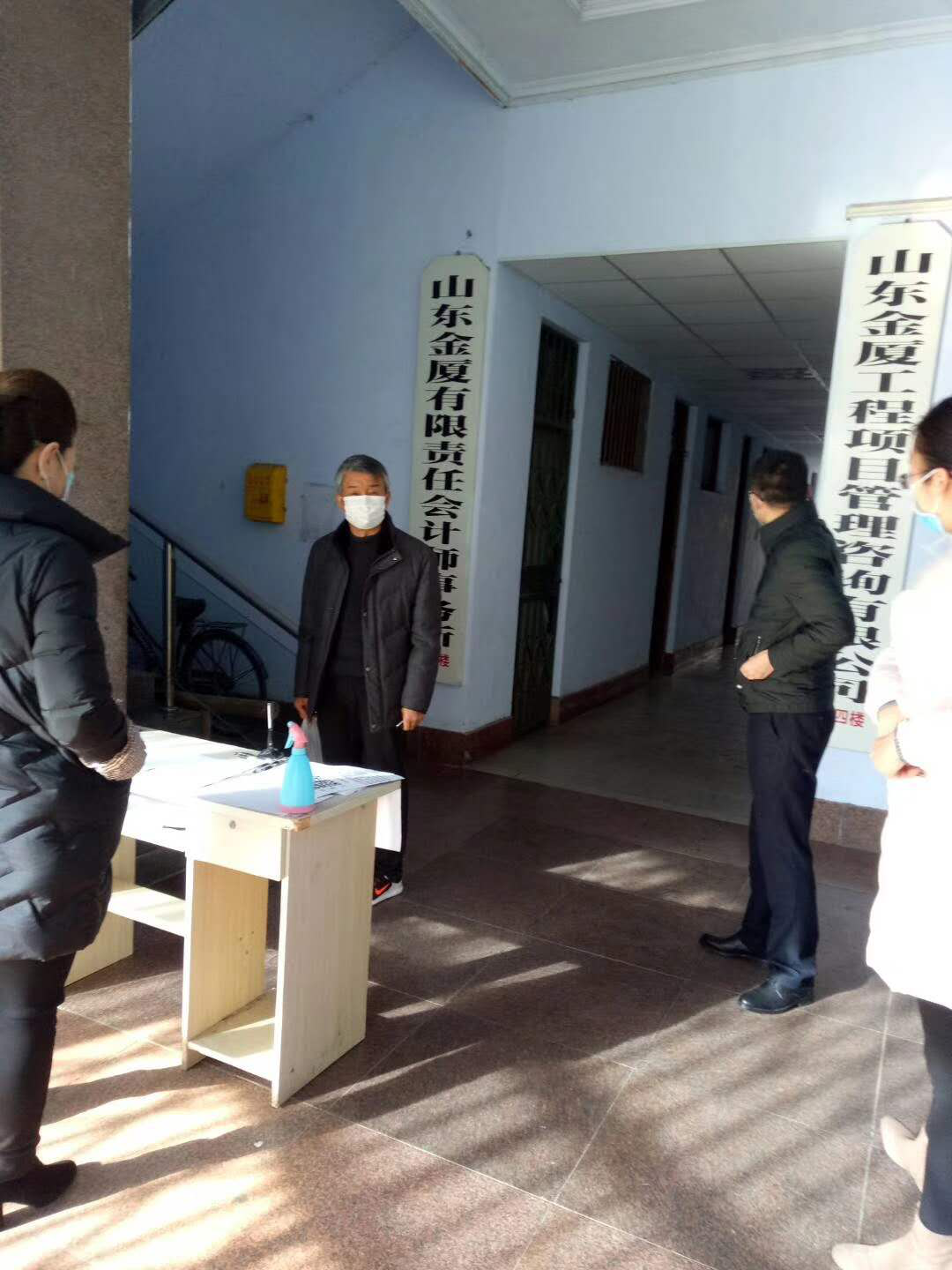 3月6日,济南市财政局下基检查企业防疫工作,了解企业复工情况及遇到困难,按照市委市政府要求作了详细的布署。值班人员严格按照外来人员防控流程进行了测温、扫描、登记工作,周局长等人在董事长和防疫专员陪同下实地查看了办公区域内防控设施,询问了防控措施和企业复工困难,董事长汇报了防控措施并全程陪同检查,周局长对山东金厦疫情防控工作给予了高度评价,并对下一步防控工作提出了决不能有一丝一毫放松的要求。